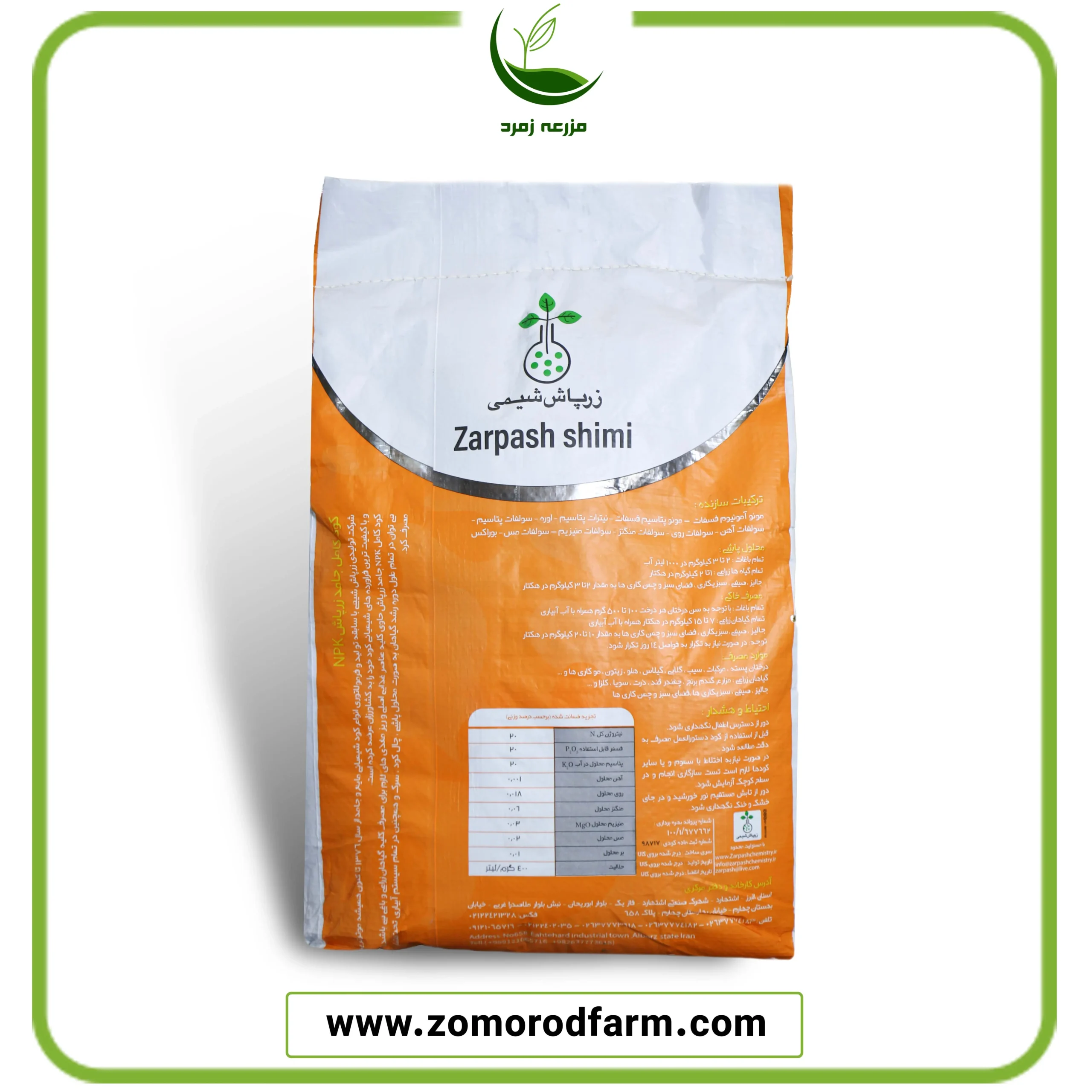 ان پ کا 202020 زرپاش شیمی یک کود کامل باکیفیت است که علاوه بر داشتن عناصر ماکرو (ازت و فسفر و پتاسیم) حاوی عناصر ریزمغذی نیز میباشد. این کود دارای حلالیت بسیار بالا بوده و عناصر تشکیل دهنده آن به صورت کلات میباشند.