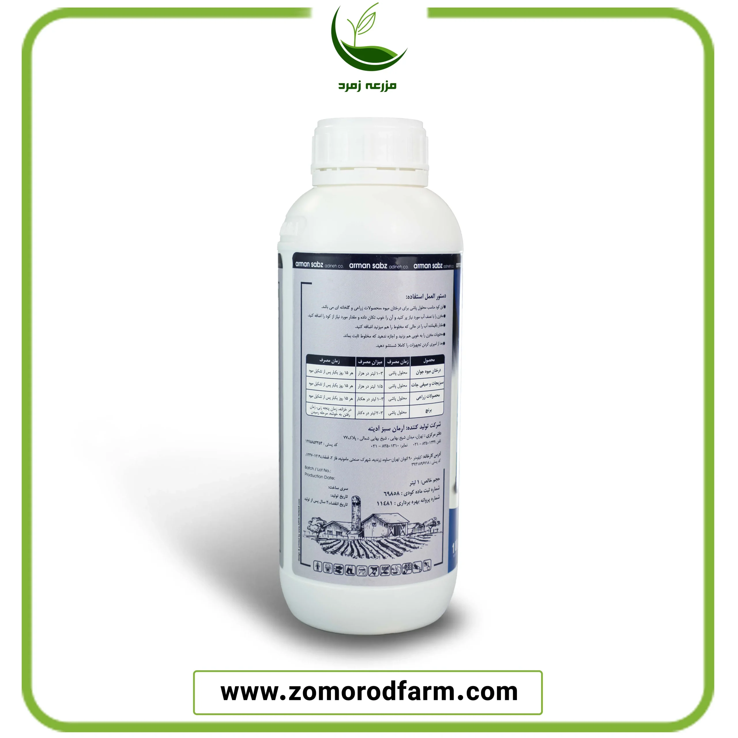 | محصولات زراعی | محلولپاشی | 1 تا 3 لیتر در هکتار | هر 15 روز یکبار پس از تشکیل میوه |