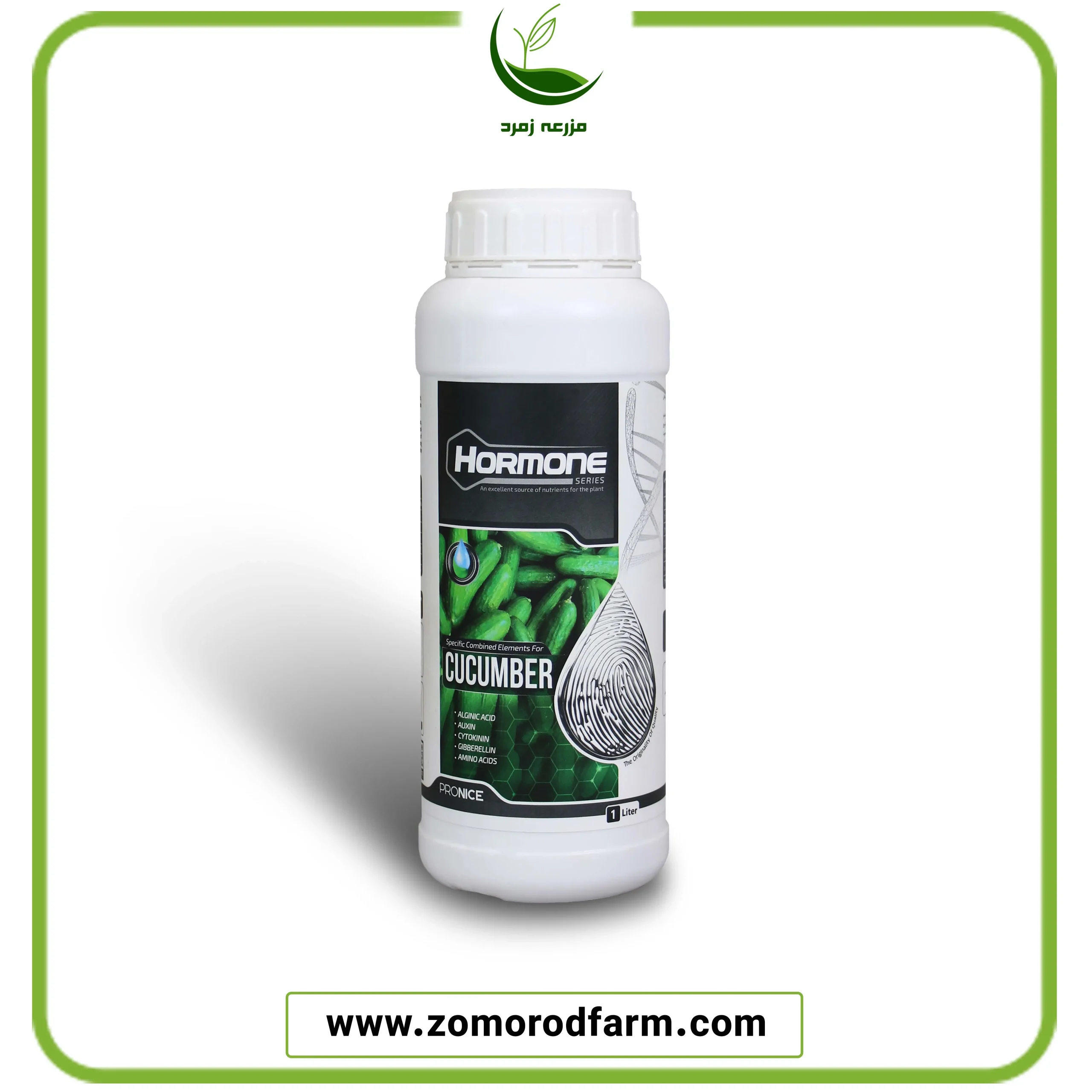 هورمون خیار از دسته محصولات سـری هُـورمُون که شامل کودهای اختصاصی محصولات زراعی مختلف میباشد که با توجه به نیازهای خاص هر گیاه، دارای فرمولاسیونهای پیشرفته و متناسب به رفع نیازهای گیاه کمک میکند. هورمون خیار حاوی مقادیر متناسب نیتروژن، فسفر، پتاسیم، منیزیم، عناصر میکرو، اسید آمینه، عصاره جلبک و هورمونهای طبیعی میباشد، که سبب بهبود ویژگیهای کمی و کیفی خیار میشود و به تحریک و تسریع رشد، بهبود رسیدگی و افزایش ثمر محصول کمک شگرفی میکند. اولویت و تاثیر بالاتر مصرف این کود به صورت محلول پاشی میباشد ولی میتواند به صورت کود آبیاری نیز مصرف شود.