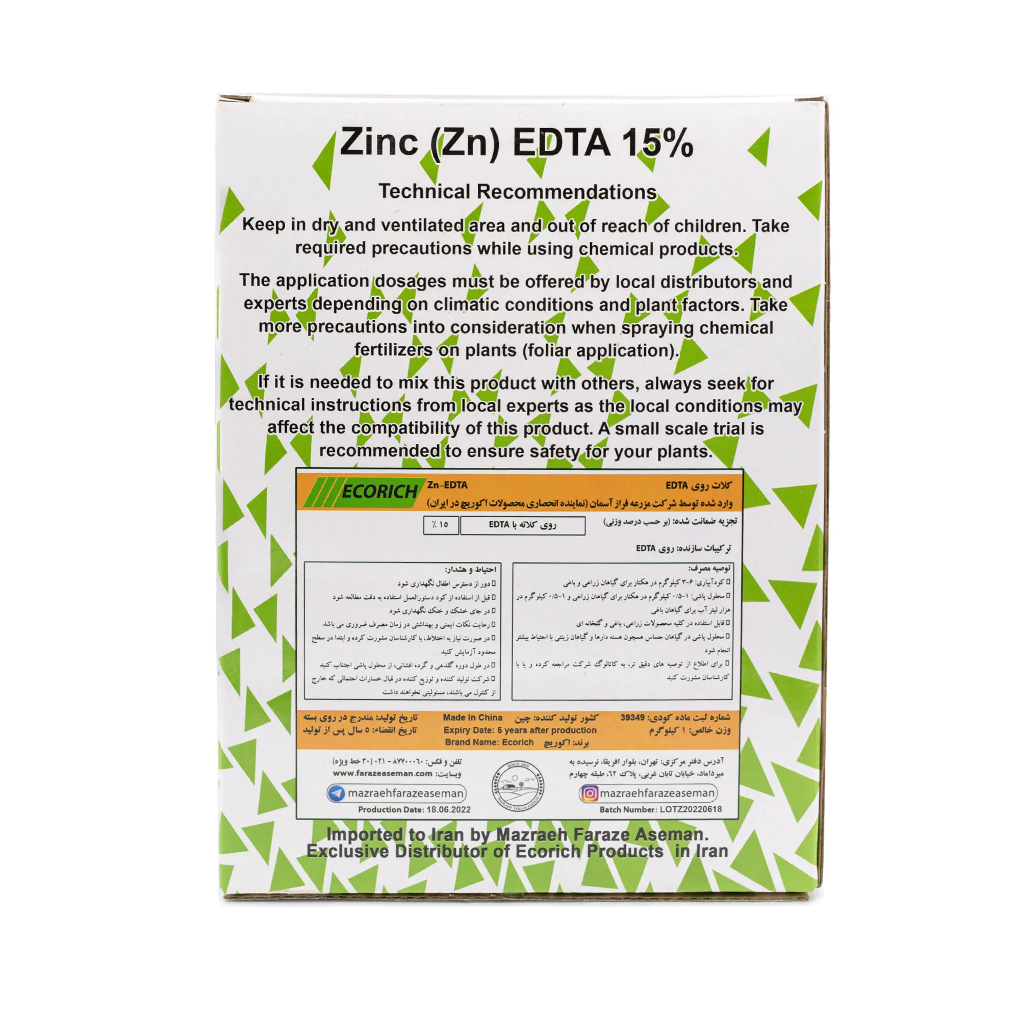ویژگی‌های محصول: روی کلات شده با EDTA