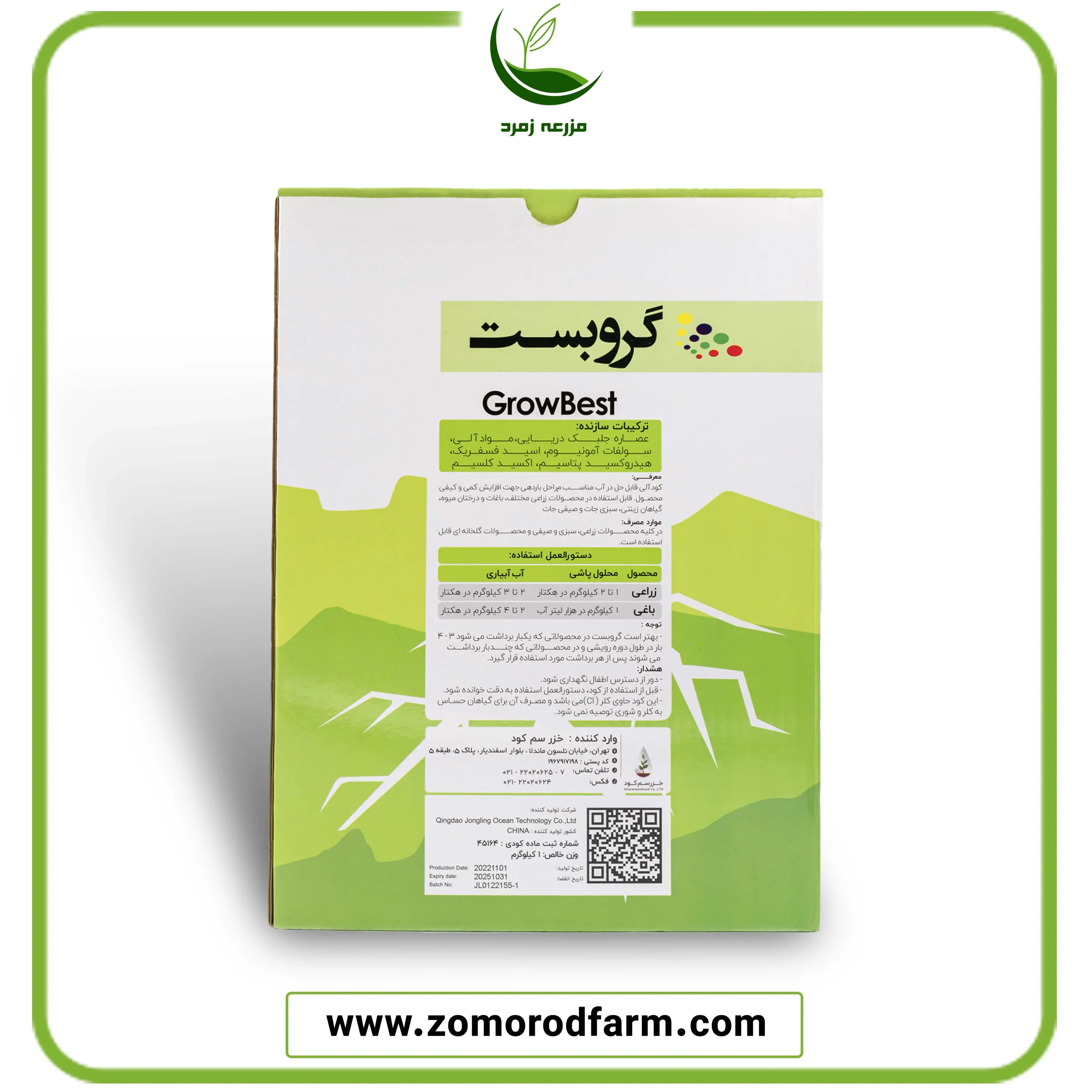 کود آلی گروبست قابل حل در آب و حاوی عصاره جلبک دریایی است. گروبست سبب افزایش عملکرد و رنگ‌آوری محصول می‌شود. کود آلی گروبست در محصولات زراعی مختلف، باغات و درختان میوه، گیاهان زینتی، سبزیجات و صیفی‌جات قابل استفاده است.